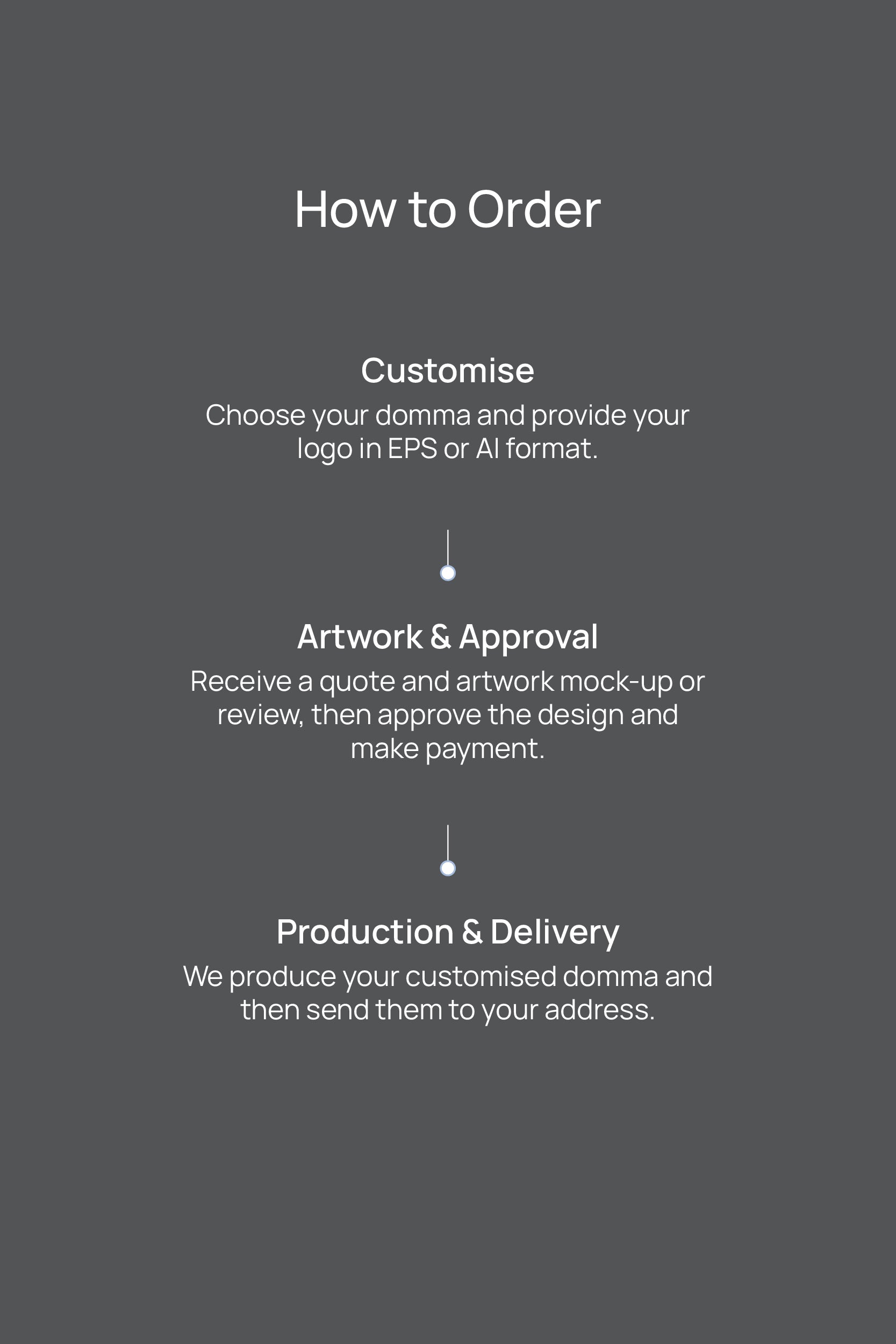 Elevate your brand or event with Domma, fully customizable to suit your corporate needs or special occasions. Our offerings cater to your customization requirements, ensuring your brand stands out.