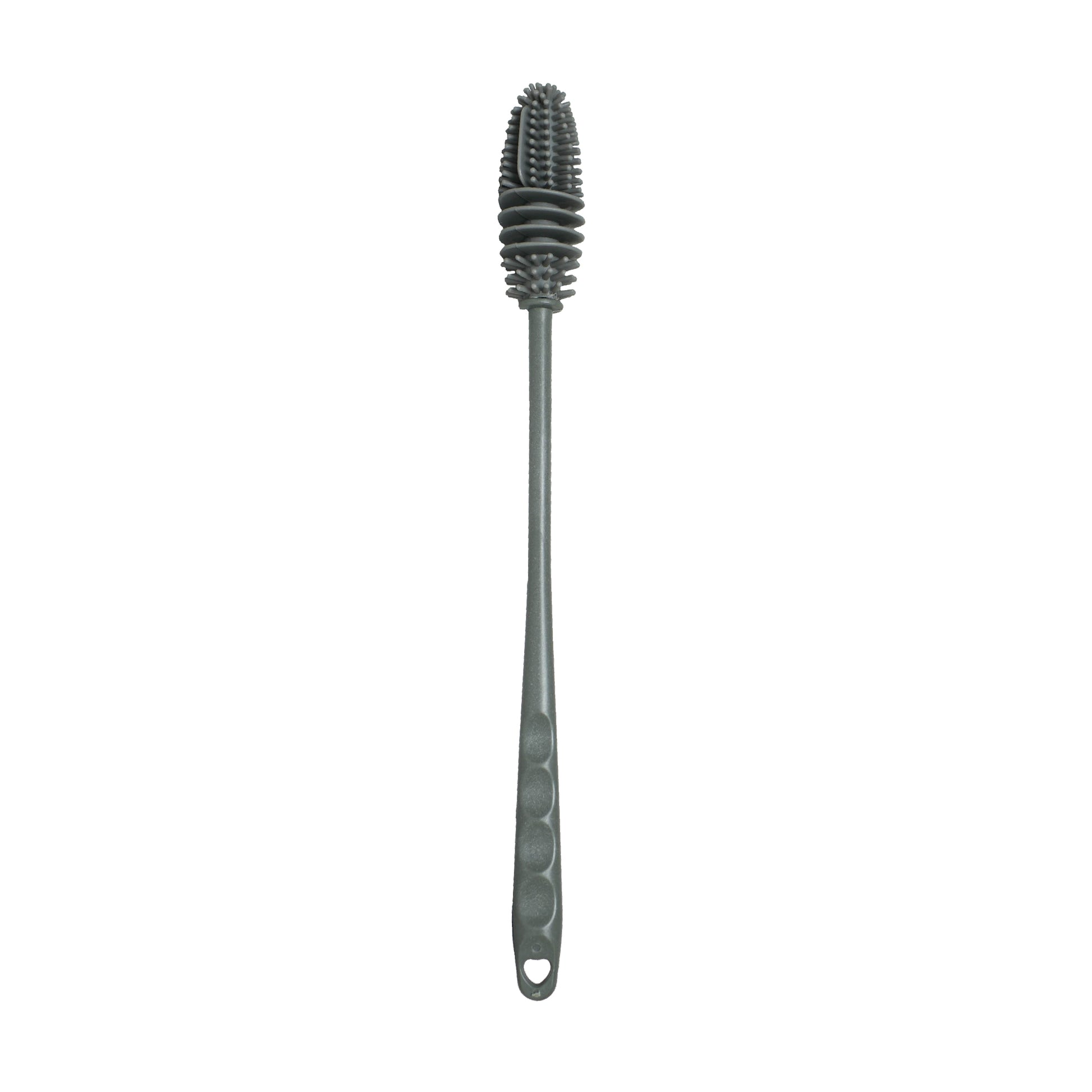 A soft bottle brush designed to clean your tumbler with care, featuring a long handle for comfortable grip and easy use.